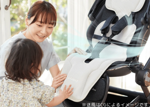 3. Q:エアラブ4+(プラス)はどんなベビーカーにも取り付けできますか? A:ほぼ全てのメーカーに対応していますが一部は取り付けできません。