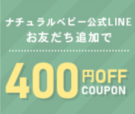 ナチュラルベビー楽天市場店ではLINEお友だち追加で400円OFFクーポンを配布しています。